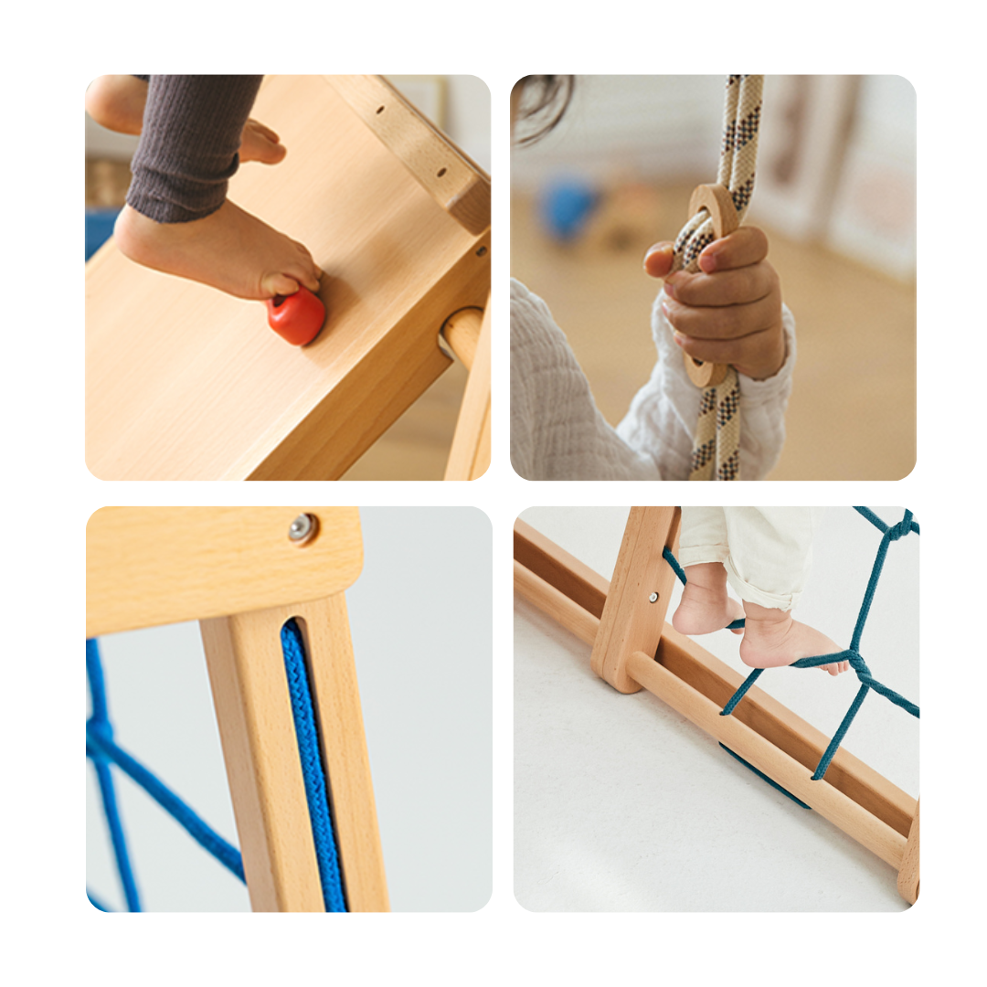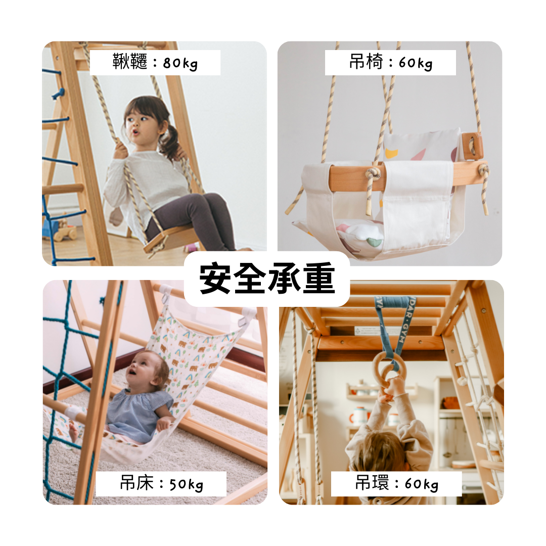 能伴隨孩子成長的攀爬架.別讓大人的固有思維侷限了孩子玩耍的創造力.孩子天性自由好動,攀爬架可透過不同擺設,創造難度不一的挑戰路線