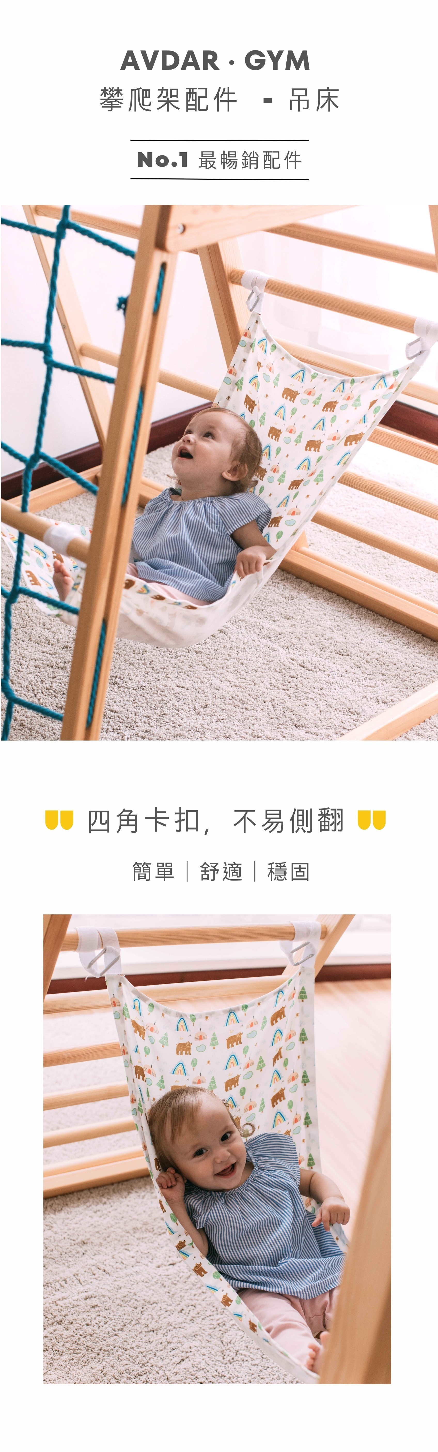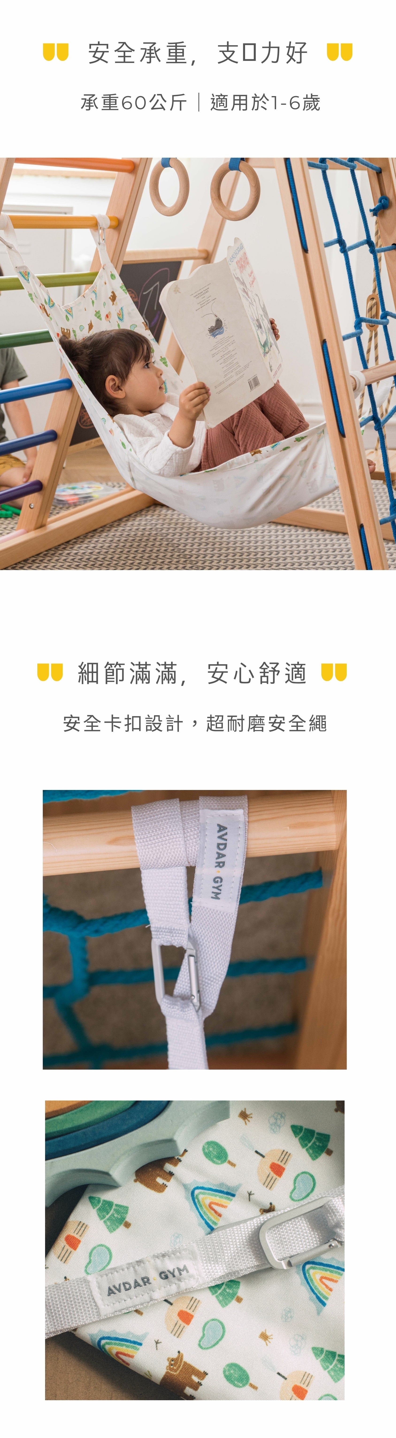 孩子們最喜愛的配件,輕鬆躺臥自在搖擺,是攀爬架最不可或缺的好夥伴!
