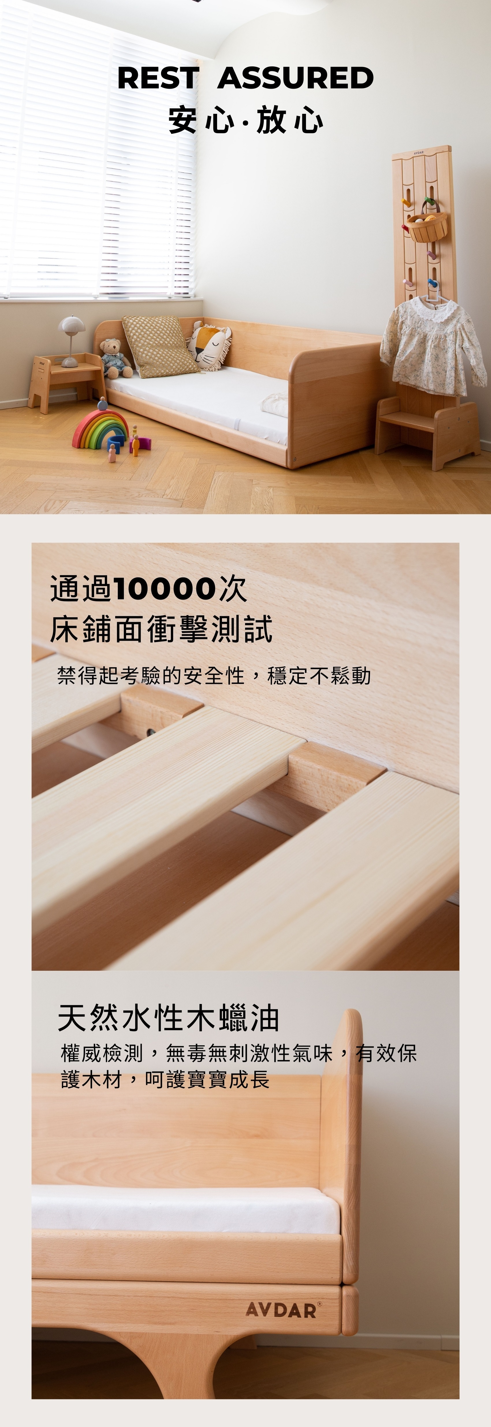 💡實木製作:穩固安全,經10000次衝擊測試,無毒無甲醛
