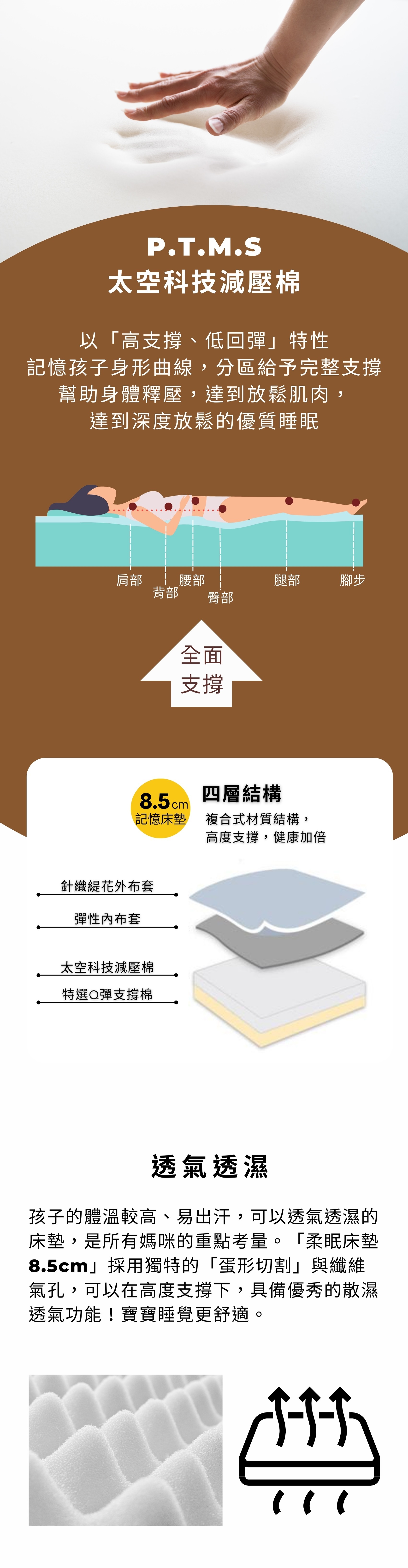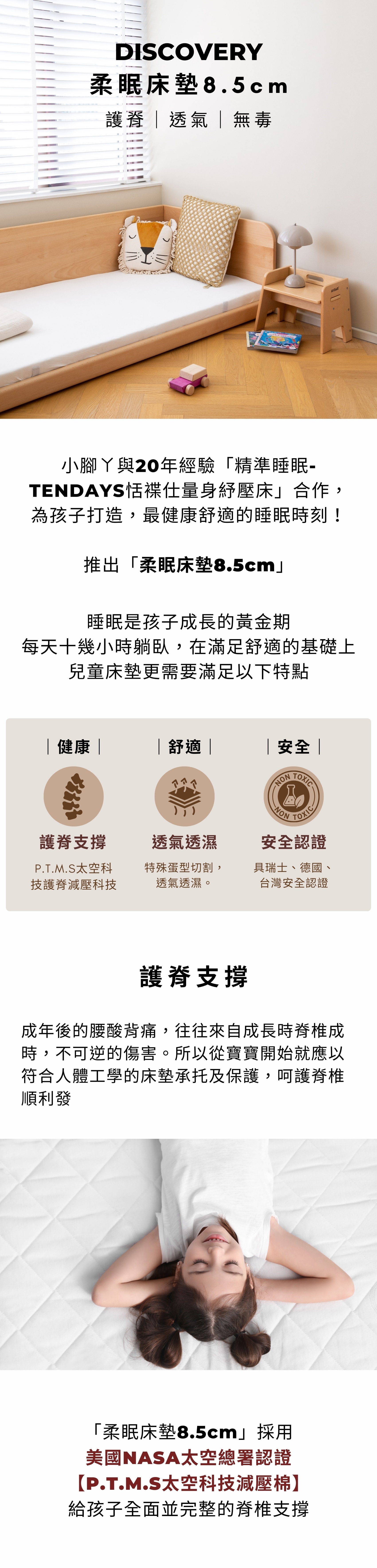 護脊支撐:美國NASA太空總署認證【P.T.M.S太空科技減壓棉】
