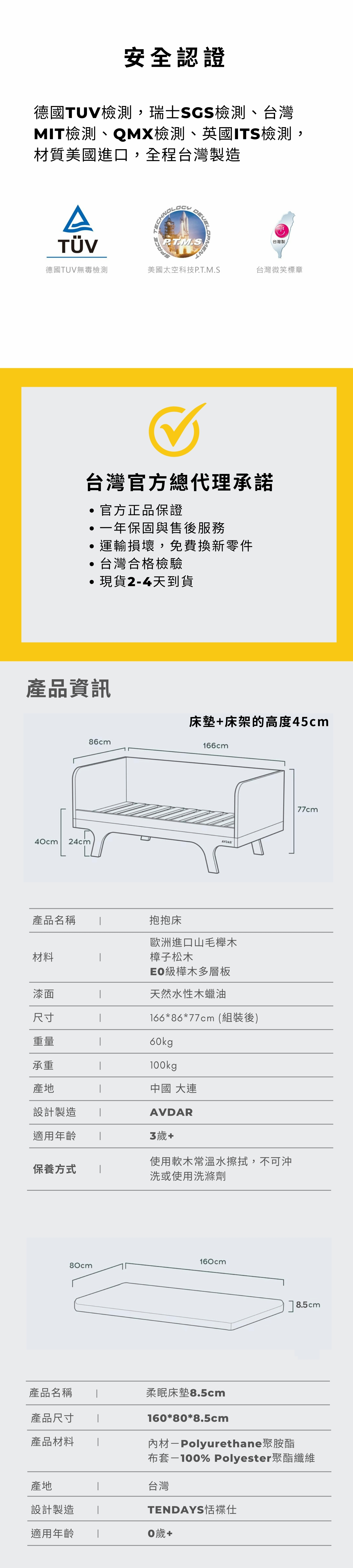 安全認證:通過德國TUV檢測,瑞士SGS檢測、台灣MIT檢測