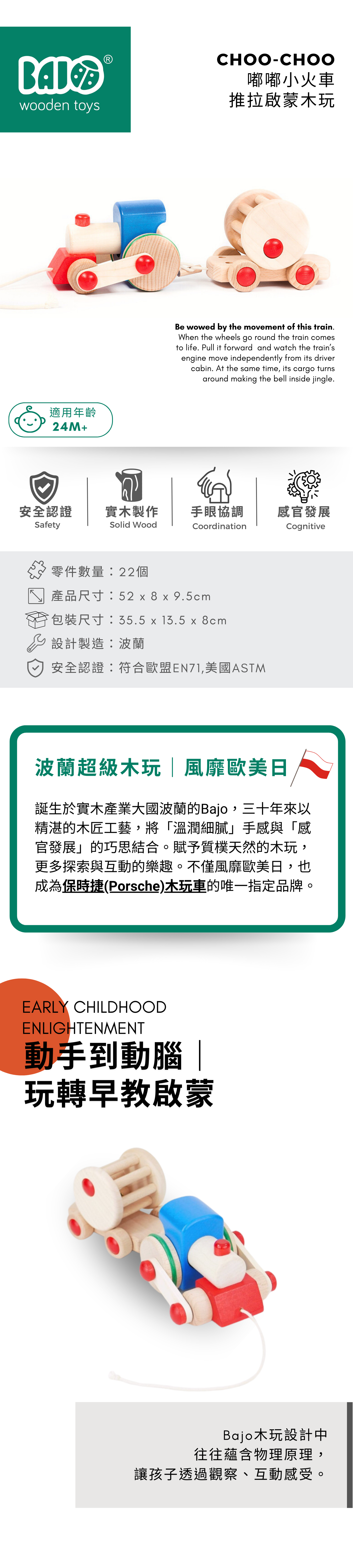 嘟嘟小火車,搭配可拆卸車廂,滿足孩子手作的樂趣。火車頭隨著拉繩前後伸縮,完美複製蒸汽火車行進模式