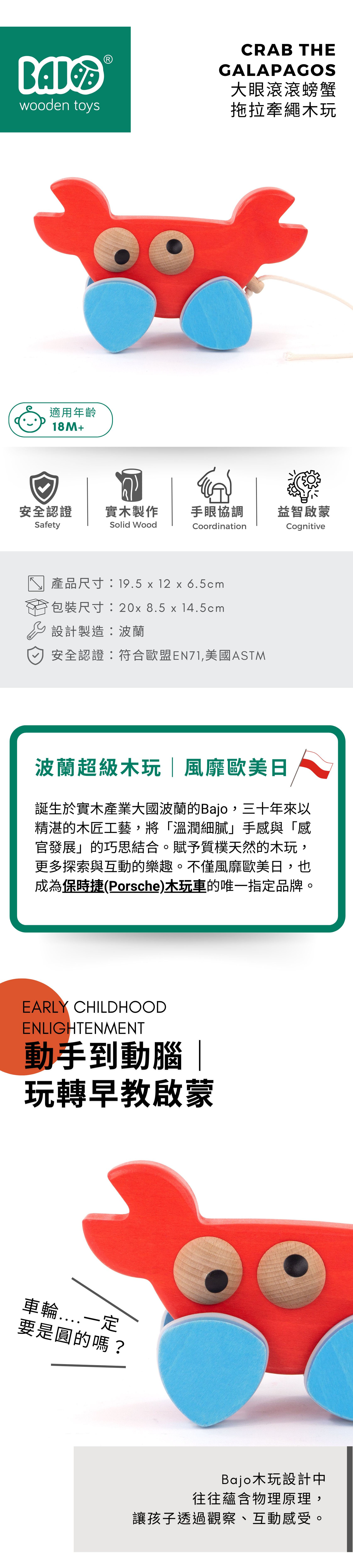 大眼滾滾螃蟹採用三角形輪子設計,模擬靈活爬行動態,。靈動的360度滾動眼睛增添趣味,幫助孩子提升手眼協調並探索海洋生物的特性。