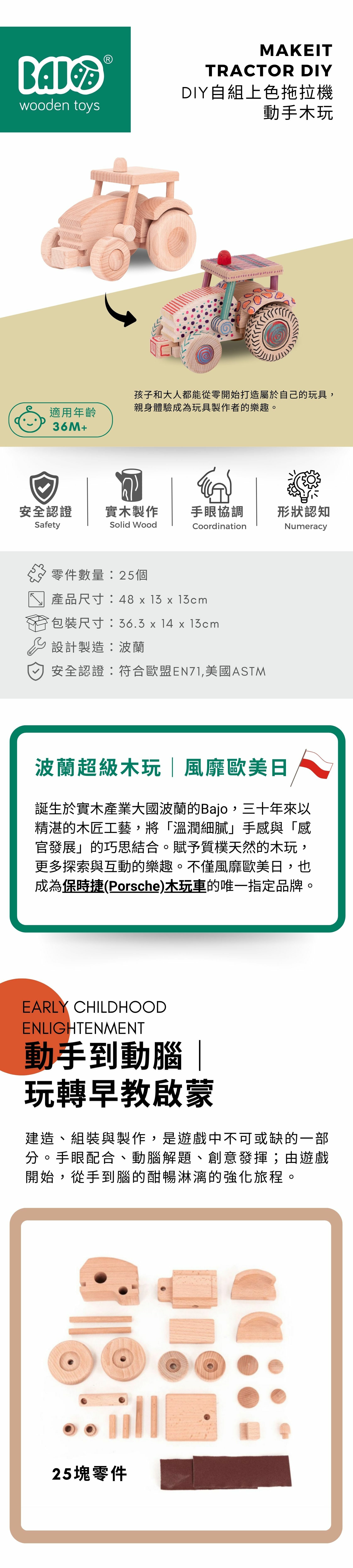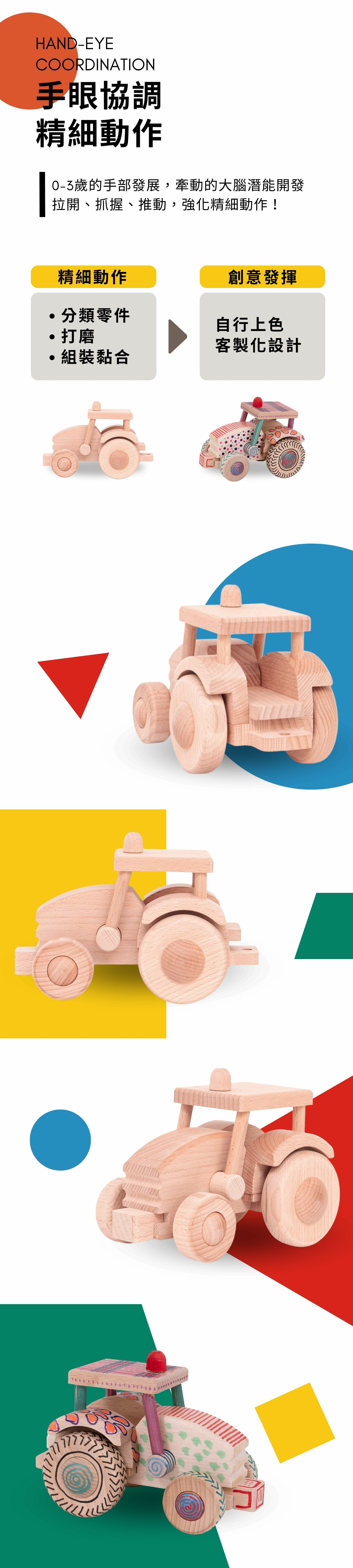 DIY 拖拉機玩具,組裝與遊戲結合,提升手部精細動作與邏輯思維。