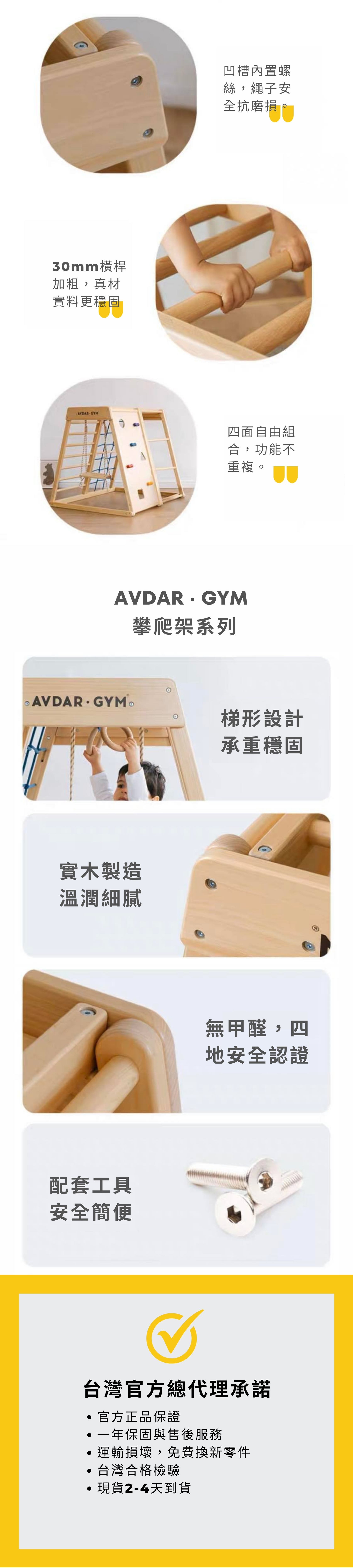 💡 4款攀爬模式:橫桿、攀岩面&孔洞式攀岩面、軟繩網