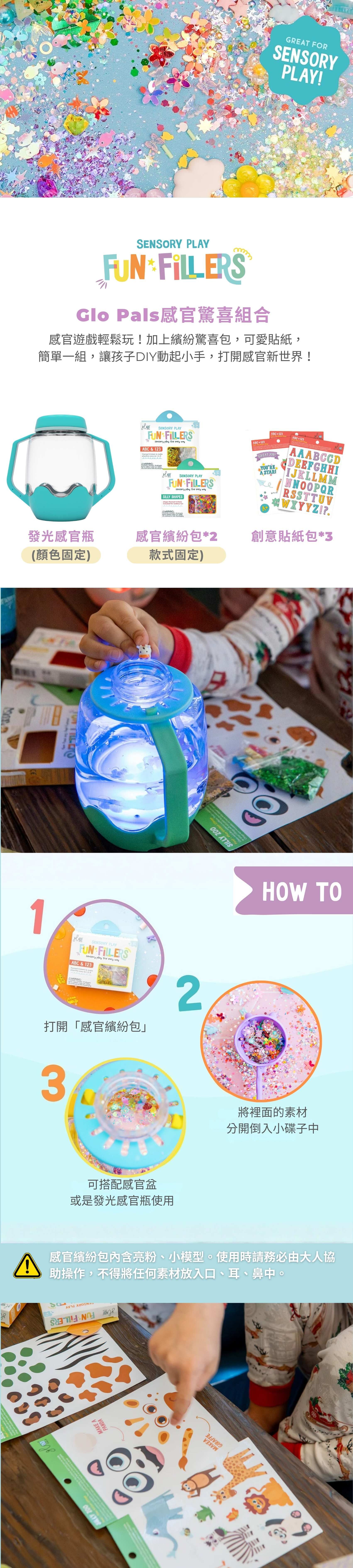 明星感官商品,注水發光,輕拍變換9種顏色。輸入視覺、觸覺、聽覺等感官刺激;還能DIY加入喜歡的元素( 亮片、珠珠、炫光小冰塊),透過觀察瓶中水流與元素變化,培養專注力!