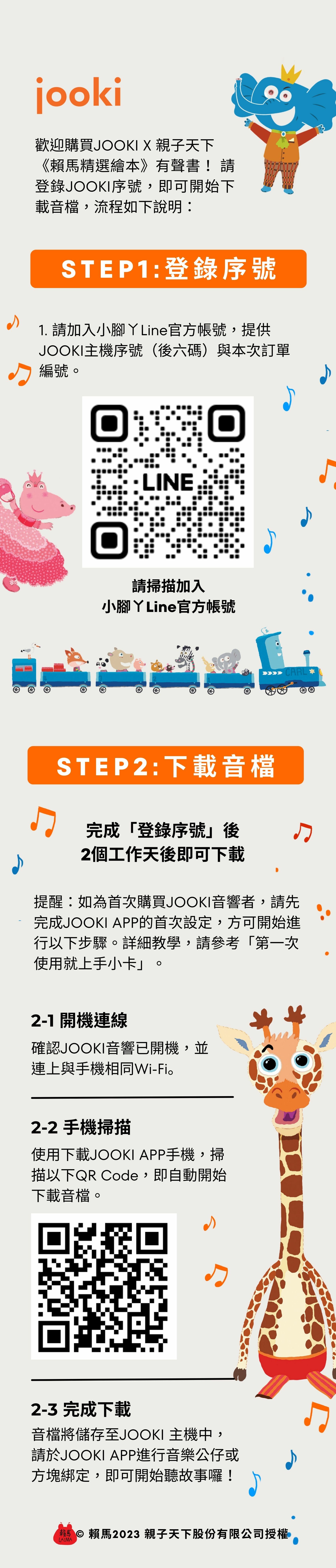 產品包含:以下賴馬精選繪本劇場版有聲書(純音檔)