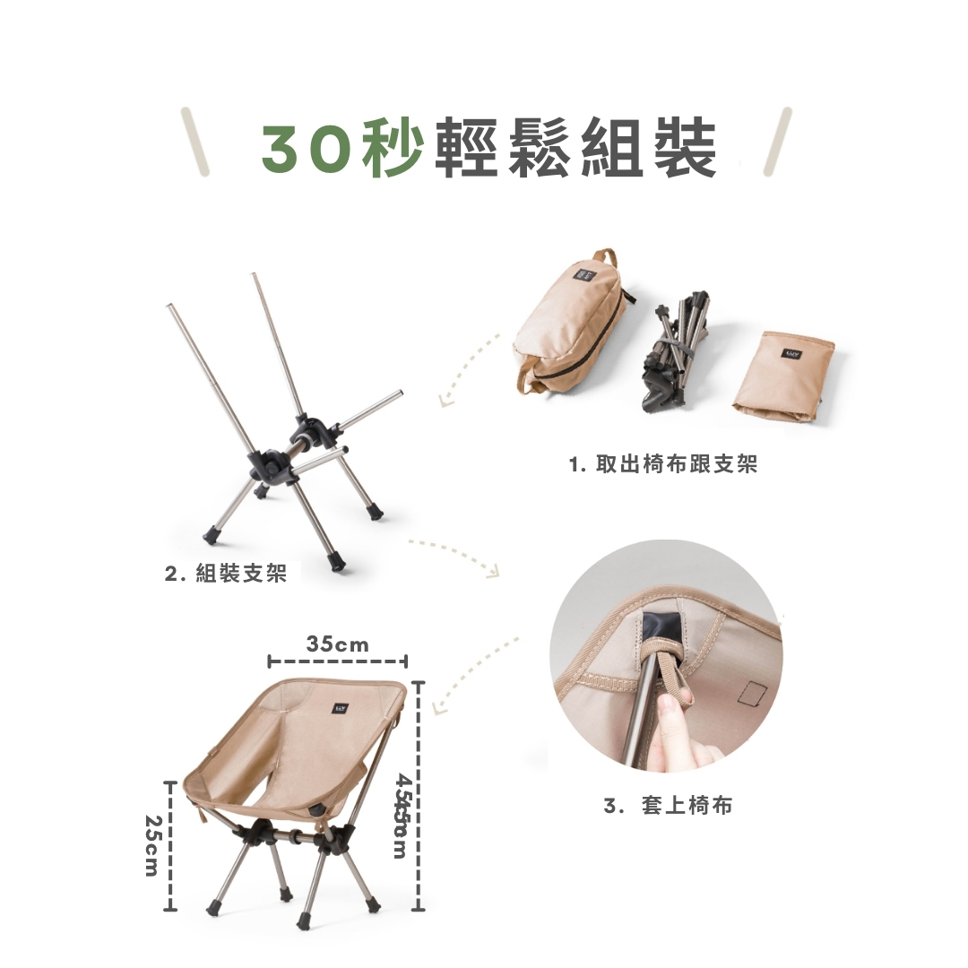 上山下海的好夥伴,折疊收納超輕巧,月亮弧形椅背設計,貼合人體身形更減壓。